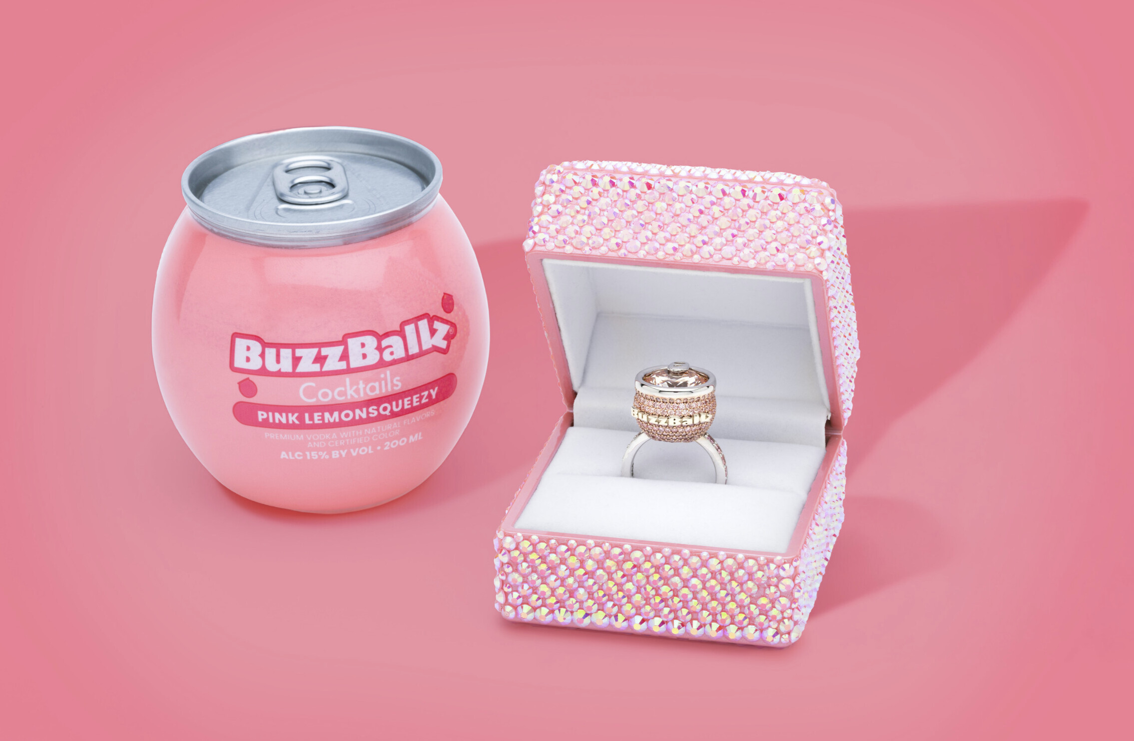 BuzzBallz has never been subtle. The brand’s round plastic cocktails already live somewhere between party favor and cultural wink. Turning Pink Lemonsqueezy into a diamond ring feels less like a leap and more like a logical escalation.