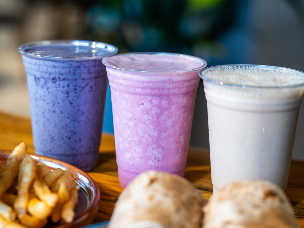 On the beverage side, the Locally Green smoothie ($10–12) blends mango, blue spirulina, matcha, lemon, spinach, and pineapple juice — a combination that should be chaotic and isn’t, because the mango and pineapple anchor the grassy matcha and iron-forward spinach with enough tropical sweetness to hold the whole thing together. Coffee runs $2.50 for brewed to $4.50 for espresso drinks, which, again, is an honest number in a zip code that charges more for less.